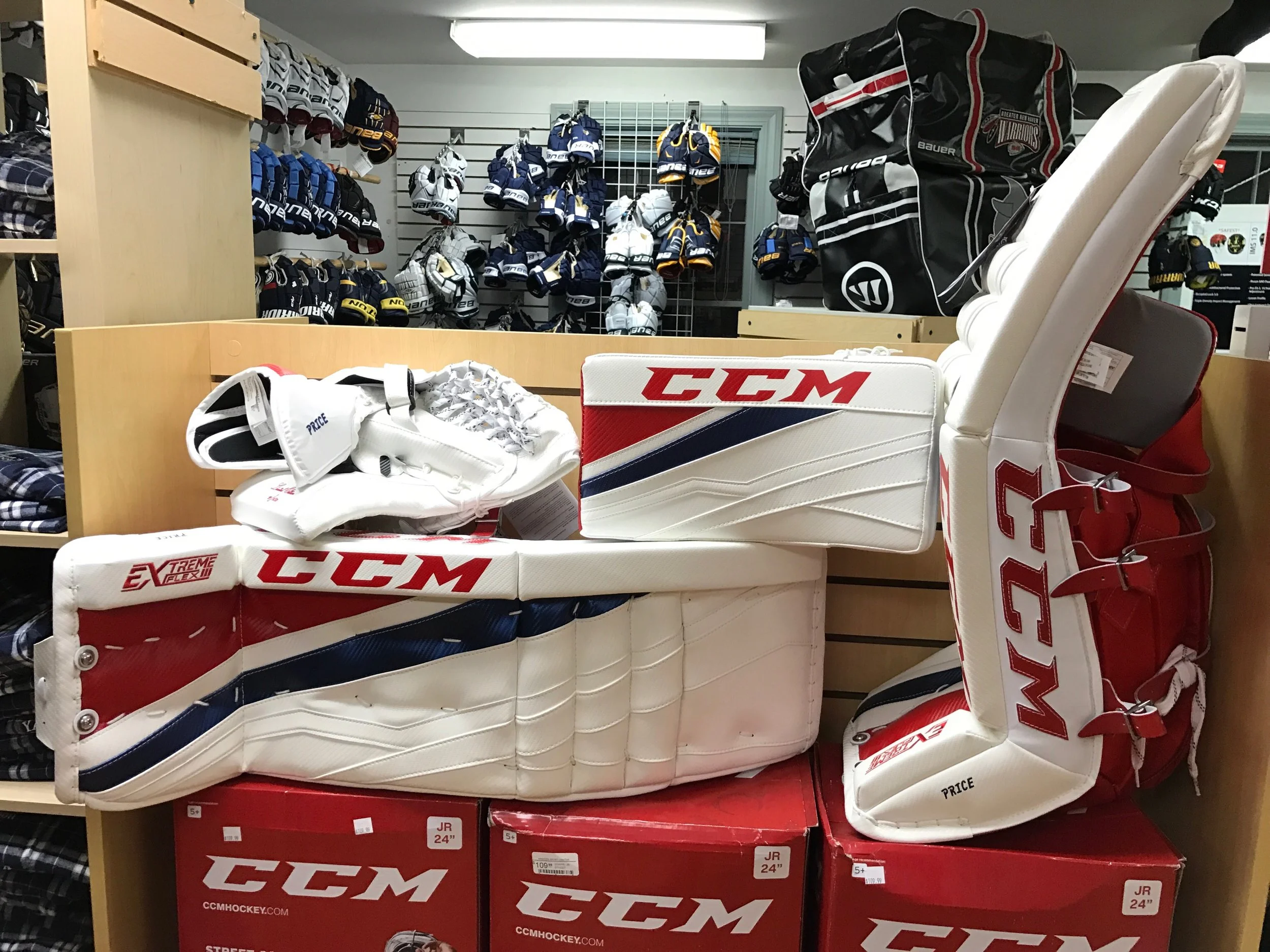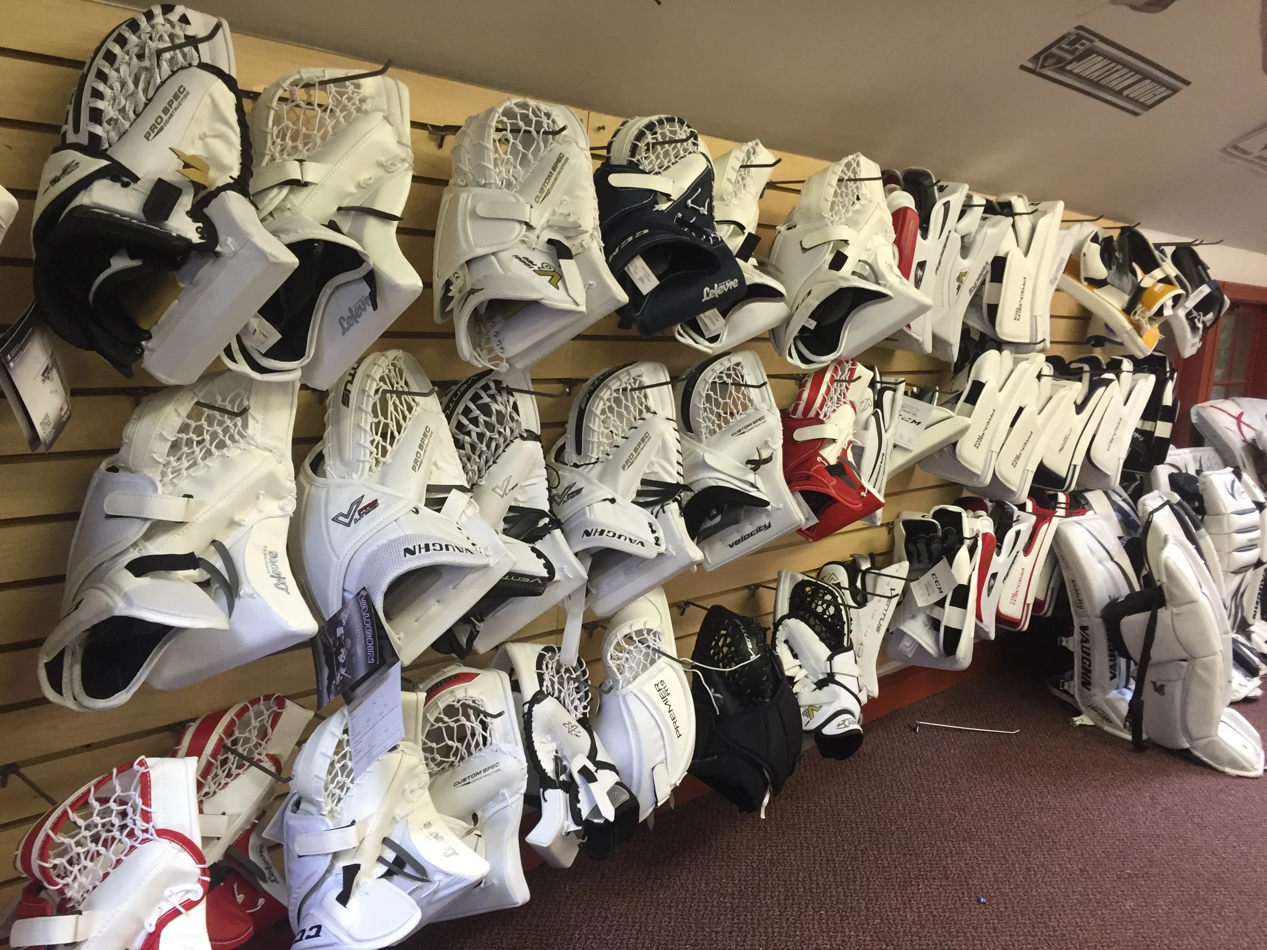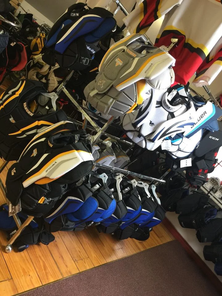 From the beginning goalie to the Division I starter, Hamden Sport has a fully stocked goalie department that includes all the major brands including CCM, SportMask, Bauer, Vaughn, etc. If it is new equipment or used equipment that you are in the market for, our highly qualified staff can match you to the proper equipment to optimize your game. With several goalies on staff, our custom sales have become a leader in the market. Check out a preview of our stock and custom gear below!
